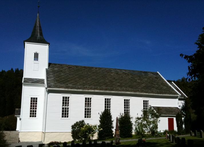 Keywords: Meland kirke2.JPG en Meland kirke in the municipality of Meland Hordaland Norway own Reinhardheydt 2010-09-05 60 54052 5 191287 heading NNE Meland church
