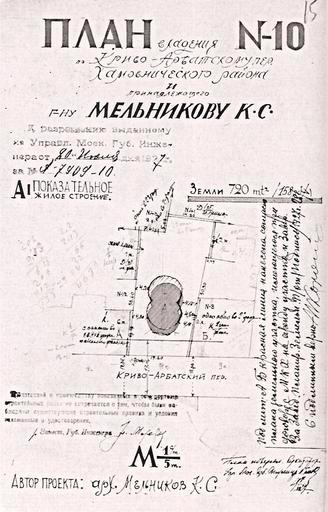 | Keywords: Melnikov house plan 1.jpg ru План участка дома ельникова в К ивоа батском пе еулке Хан- агомедов С О Константин ельников А хитекту а-С 2006 296 с ISBN 5-9647-0095-0 ISBN 978-5-9647-0095-1 Konstantin Melnikov 1927-07-20 PD-Art Melnikov House |