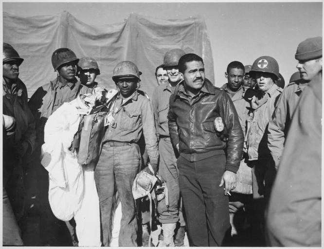 | Keywords: u.s. national archives usnationalarchives today's document todaysdocument nara:arcid=520624 january january 20, 1955 january201955 01/20/1955 01201955 january 20 january20 january 22 january22 african-american africanamerican air force airforce monochrome groupshot people blackandwhite black and white Original Caption: "Members of the 99th Fighter Squadron of the Army Air Forces, famous all-Negro outfit, who are rapidly making themselves feared by enemy pilots, pose for a picture at the Anzio beachhead. In the foreground, head bared, is 1st Lt. Andrew Lane.", ca. 02/1944 Production Date: ca. 02/1944 From: General Photographic File of the Department of Navy, 1943 - 1958; General Records of the Department of the Navy, 1804 - 1958; Record Group 80; National Archives. Persistent URL: arcweb.archives.gov/arc/action/ExternalIdSearch?id=520624 Access Restrictions: Unrestricted Use Restrictions: Unrestricted Original Caption: "Members of the 99th Fighter Squadron of the Army Air Forces, famous all-Negro outfit, who are rapidly making themselves feared by enemy pilots, pose for a picture at the Anzio beachhead. In the foreground, head bared, is 1st Lt. Andrew Lane.", ca. 02/1944 Production Date: ca. 02/1944 From: General Photographic File of the Department of Navy, 1943 - 1958; General Records of the Department of the Navy, 1804 - 1958; Record Group 80; National Archives. Persistent URL: arcweb.archives.gov/arc/action/ExternalIdSearch?id=520624 Access Restrictions: Unrestricted Use Restrictions: Unrestricted |
