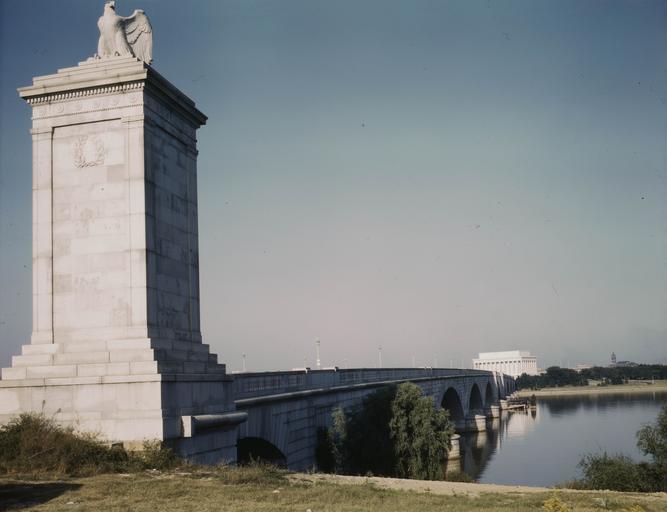 | Keywords: Memorial Bridge, looking across to Washington, D.C., 1943.jpg LargeImage 38 53 9 2 N 77 3 31 9 W heading ENE Arlington Memorial Bridge looking from the Virginia side of the Potomac River across to the Lincoln Memorial Washington D C http //hdl loc gov/loc pnp/fsac 1a35460 ~ 1943 Farm Security Administration; Office of War Information Collection PD-USGov Arlington Memorial Bridge 1943 in Washington D C LOC-image fsac 1a35460 | ||||