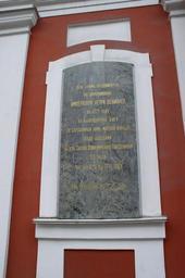 Keywords: Memorial marble plaque 1 on Saint Pantaleon's Church (Saint Petersburg).jpg The memorial marble plaque on south facade of Saint Pantaleon's Church in Saint Petersburg October 30 2006 емо иальная м амо ная доска на южном фасаде Пантелеймоновской це кви в Санкт-Пете бу ге 30 октяб я 2006 2006-10-30 own assumed Sergey kudryavtsev Inscription адпись на доске «Сей х амъ воздвигнутъ въ ца ствованіе И ПЕРАТОРА ПЕТРА ВЕЛИКАГО въ 1721 году въ благода еніе Богу за да ованныя намъ мо скія побѣды АД ШВЕДА И въ день Святаго Великомученника Пантелеймона 27 Іюля п и Гангутѣ въ 1714 году и Г енгамнѣ въ 1720 году» Translation of the inscription on plaque «This сhurch was build during the reign of Peter the Great in 1721 as a gratitude to God for granted to us naval victories over Swedes at Saint Pantaleon Day Jule 27 near Gangut in 1714 and near Grengam in 1720» Saint Pantaleon's Church Saint Petersburg Plaques in Saint Petersburg Plaques referencing 1721 Marble plaques |
