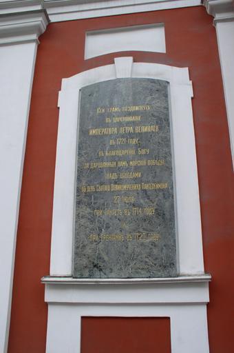 | Keywords: Memorial marble plaque 1 on Saint Pantaleon's Church (Saint Petersburg).jpg The memorial marble plaque on south facade of Saint Pantaleon's Church in Saint Petersburg October 30 2006 емо иальная м амо ная доска на южном фасаде Пантелеймоновской це кви в Санкт-Пете бу ге 30 октяб я 2006 2006-10-30 own assumed Sergey kudryavtsev Inscription адпись на доске «Сей х амъ воздвигнутъ въ ца ствованіе И ПЕРАТОРА ПЕТРА ВЕЛИКАГО въ 1721 году въ благода еніе Богу за да ованныя намъ мо скія побѣды АД ШВЕДА И въ день Святаго Великомученника Пантелеймона 27 Іюля п и Гангутѣ въ 1714 году и Г енгамнѣ въ 1720 году» Translation of the inscription on plaque «This сhurch was build during the reign of Peter the Great in 1721 as a gratitude to God for granted to us naval victories over Swedes at Saint Pantaleon Day Jule 27 near Gangut in 1714 and near Grengam in 1720» Saint Pantaleon's Church Saint Petersburg Plaques in Saint Petersburg Plaques referencing 1721 Marble plaques |