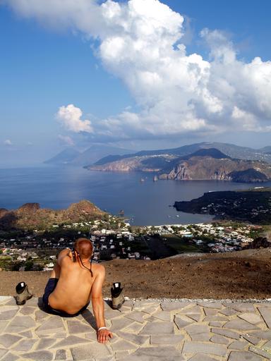 Keywords: men climb man climbing adventure nature hiking travel top freedom mountain success person landscape young sky mountain top activity lifestyle male summer outdoor sport italy sicily lipari see watch sightseeing sea shoe boot relax
