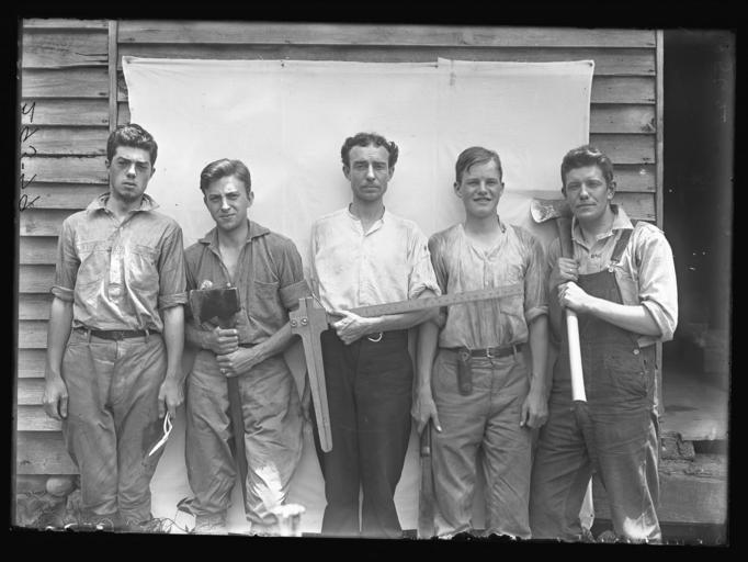 | Keywords: blue ridge mountains blueridgemountains forestry huron h. h smith trees botany expedition specimen collection georgia u.s.a. usa blackandwhite monochrome black and white Five men holding axes, machete and measuring device, probably from Blue Ridge Mountains to help curator collect forestry. 1908. Photo by Huron H. Smith. Location: Blue Ridge Mountains, Georgia, U.S.A., North America Original material: 5x7 inch glass negative Digital Identifier: CSB29579 Learn more about The Field Museum's Library Photo Archives. Five men holding axes, machete and measuring device, probably from Blue Ridge Mountains to help curator collect forestry. 1908. Photo by Huron H. Smith. Location: Blue Ridge Mountains, Georgia, U.S.A., North America Original material: 5x7 inch glass negative Digital Identifier: CSB29579 Learn more about The Field Museum's Library Photo Archives. |
