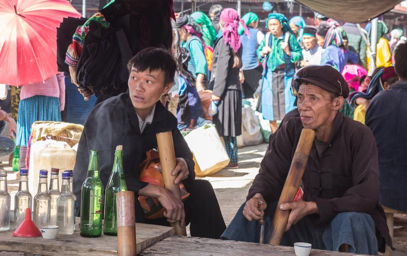 Keywords: men locals alcohol smoking vietnam dong van the market bazaar