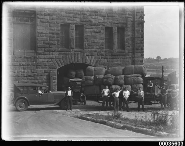 | Keywords: hood collection hoodcollection samuel j hood collection samueljhoodcollection merchant vessel merchantvessel foreign vessel foreignvessel maritime activity maritimeactivity barque ship's crew shipscrew sailor sailors sydney harbour sydneyharbour harbour scenes harbourscenes magdalene vinnen magdalenevinnen wool bales woolbales cargo wool woolloomooloo warehouse blackandwhite monochrome photo border black and white This photograph was probably taken at Woolloomooloo in Sydney during the visit of the four-masted steel barque MAGDALENE VINNEN. The vessel sailed into Sydney Harbour on 27 February 1933, under the command of Captain Lorenz Peters. The barque was loaded with almost 16,000 bales of wool, the fourth largest shipment to have left Sydney, before it sailed the record-breaking 82-day voyage for Falmouth, England. MAGDALENE VINNEN visited Australia again in 1935, with a cargo of wheat, lifted from Port Broughton in South Australia.  This photo is part of the Australian National Maritime Museum’s Samuel J. Hood Studio collection. Sam Hood (1872-1953) was a Sydney photographer with a passion for ships. His 60-year career spanned the romantic age of sail and two world wars. The photos in the collection were taken mainly in Sydney and Newcastle during the first half of the 20th century.   The ANMM undertakes research and accepts public comments that enhance the information we hold about images in our collection. This record has been updated accordingly.   Photographer: Samuel J. Hood Studio Collection  Object no. 00035603 This photograph was probably taken at Woolloomooloo in Sydney during the visit of the four-masted steel barque MAGDALENE VINNEN. The vessel sailed into Sydney Harbour on 27 February 1933, under the command of Captain Lorenz Peters. The barque was loaded with almost 16,000 bales of wool, the fourth largest shipment to have left Sydney, before it sailed the record-breaking 82-day voyage for Falmouth, England. MAGDALENE VINNEN visited Australia again in 1935, with a cargo of wheat, lifted from Port Broughton in South Australia.  This photo is part of the Australian National Maritime Museum’s Samuel J. Hood Studio collection. Sam Hood (1872-1953) was a Sydney photographer with a passion for ships. His 60-year career spanned the romantic age of sail and two world wars. The photos in the collection were taken mainly in Sydney and Newcastle during the first half of the 20th century.   The ANMM undertakes research and accepts public comments that enhance the information we hold about images in our collection. This record has been updated accordingly.   Photographer: Samuel J. Hood Studio Collection  Object no. 00035603 |