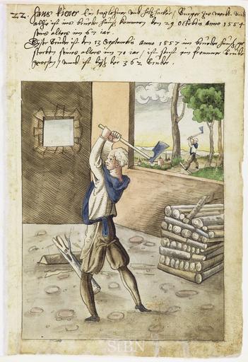 | Keywords: Mendel II 010 r.jpg Hans Kiener taglohner; Holzhacker Tagelöhner; Holzhacker Transkription und weitere Informationen siehe http //www nuernberger-hausbuecher de/75-Amb-2-317b-10-r/data Hausbuch der Mendelschen Zwölfbrüderstiftung Band 2 Nürnberg 1550 “1791 Stadtbibliothek Nürnberg Amb 317b 2° via http //www nuernberger-hausbuecher de/ 1557 anonymous PD-old-100 Hausbuch der Mendelschen Zwölfbrüderstiftung Band 2 Lumberjacks in art | ||||