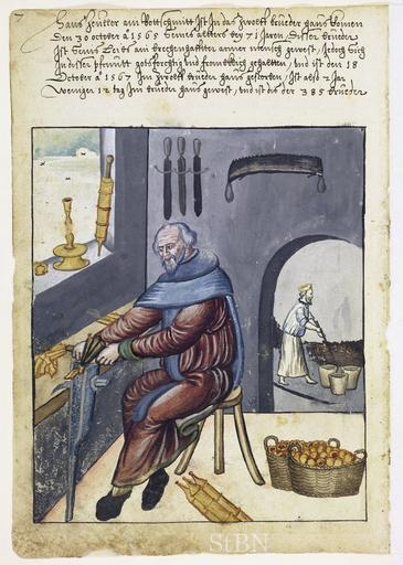 | Keywords: Mendel II 022 v.jpg Hans Zeuller Zeuler; Zeiler; Zeiller Rottschmitt Rotschmied Transkription und weitere Informationen siehe http //www nuernberger-hausbuecher de/75-Amb-2-317b-22-v/data Hausbuch der Mendelschen Zwölfbrüderstiftung Band 2 Nürnberg 1550 “1791 Stadtbibliothek Nürnberg Amb 317b 2° via http //www nuernberger-hausbuecher de/ 1567 anonymous PD-old-100 Hausbuch der Mendelschen Zwölfbrüderstiftung Band 2 Braziers smiths in art | ||||