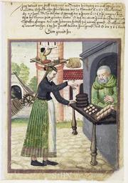 | Keywords: Mendel II 023 r.jpg Jorg Jörg; Georg urlaub Urlaub peck; Duncher; auffseher In den mullen Bäcker; Tüncher; Anstreicher; Mühlenaufseher Transkription und weitere Informationen siehe http //www nuernberger-hausbuecher de/75-Amb-2-317b-23-r/data Hausbuch der Mendelschen Zwölfbrüderstiftung Band 2 Nürnberg 1550 “1791 Stadtbibliothek Nürnberg Amb 317b 2° via http //www nuernberger-hausbuecher de/ 1568 anonymous PD-old-100 Hausbuch der Mendelschen Zwölfbrüderstiftung Band 2 Bakers in art 1568 Painters artisans in art 1568 Wooden scaffolding Watermills in art Millers in art |