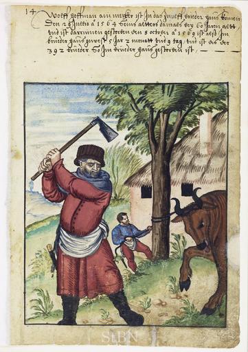 | Keywords: Mendel II 025 r.jpg Wolff Wolf; Wolfgang hoffman Hoffmann metzker Metzger Ochsenschlachter Transkription und weitere Informationen siehe http //www nuernberger-hausbuecher de/75-Amb-2-317b-25-r/data Hausbuch der Mendelschen Zwölfbrüderstiftung Band 2 Nürnberg 1550 “1791 Stadtbibliothek Nürnberg Amb 317b 2° via http //www nuernberger-hausbuecher de/ 1569 anonymous PD-old-100 Hausbuch der Mendelschen Zwölfbrüderstiftung Band 2 Butchers in art Oxen in art | ||||