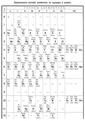 Keywords: Mendeleev Table 1905.png ru Таблица енделеева из книги Попытка химического понимания ми ового эфи а 1905 1905 http //ether-wind narod ru/Mendeleev_1905/ Д И енделеев PD-Art Uploaded with UploadWizard Dmitri Mendeleev