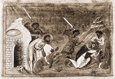 Keywords: Menologion of Basil 018.jpg Сщмч Елевфе ий еп Илли ийский иниатю а из инология Василия II 976-1025 гг Vat gr 1613 P 246 // Eleuterus of Illyria http //www pravenc ru/text/print/189703 html century 11 anonymous PD-Art Menologion of Basil II Files uploaded by Shakko from various sources Saint Liberatore |