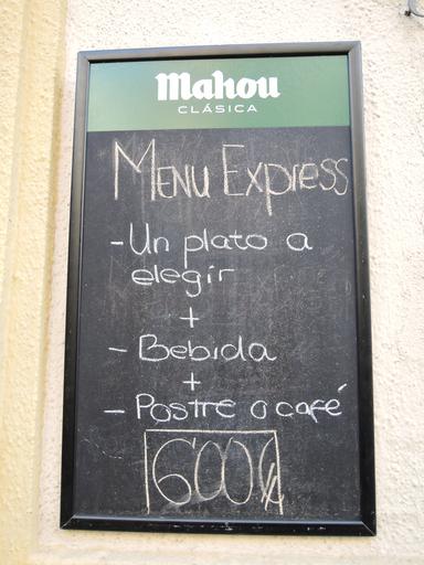 | Keywords: Menu Express 6 euros.JPG es Un menú en la calle Colón de Valencia 2015-12-18 13 50 37 own Mr Ricochet other versions cc-zero Carrer de Colom València Mahou Food menus in Spain Restaurants and cafes in Valencia Food menus in Spanish Blackboards in Spain Blackboards in the Land of Valencia |