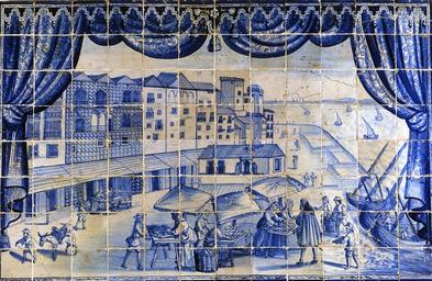 | Keywords: Mercado da Ribeira Velha - faiança portuguesa, séc. XVIII (1º quartel).png en Portuguese tile work depicting the Mercado da Ribeira Velha in Lisbon Among the buildings one can make out the Casa dos Bicos still standing today and a section of the Moorish Wall with the Tower of Saint Peter 1st quarter of the 18th century pt Painel de azulejo representando o Mercado da Ribeira Velha em Lisboa Entre o casario reconhece-se a Casa dos Bicos e um troço da cerca moura com a torre de São Pedro 1 º quartel do século XVIII 18th-century http //www museudelisboa pt/pecas/detalhe/news/mercado-da-ribeira-velha/ no_cache 1 tx_news_pi1 5Bcontroller 5D News tx_news_pi1 5Baction 5D detail cHash 7d3b7ef11f5e8f9e4c2b0b0ad93fe33e Museu de Lisboa - Palácio Pimenta Portuguese school other versions Custom license marker 2016 07 07 PD-old-100 18th-century azulejos Museu da Cidade Lisboa Mercado da Ribeira Velha Cerca Velha Casa dos Bicos Cerca Moura de Lisboa |