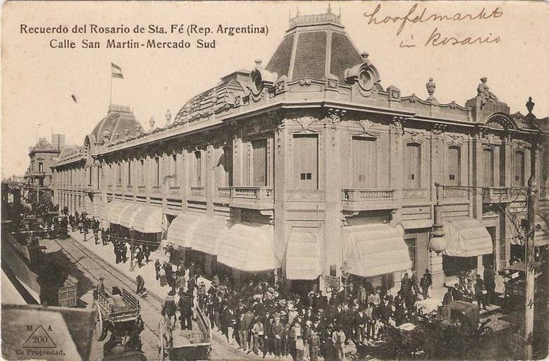 | Keywords: Mercado del Sud (postal MA).jpg Summary es Vista del Mercado Sud en la calle San Martin esq San Luis de Rosario hacia 1903 cuando fue reconstruido Actual Plaza Montenegro Tarjeta Postal MA n° 200 author 1903 Licensing PD-AR-Anonymous PD-anon-1923 Markets in Argentina Streets in Rosario Argentina Beaux-Arts architecture in Argentina Argentina in the 1900s Demolished buildings in Rosario Argentina Postcards of Rosario Argentina | ||||