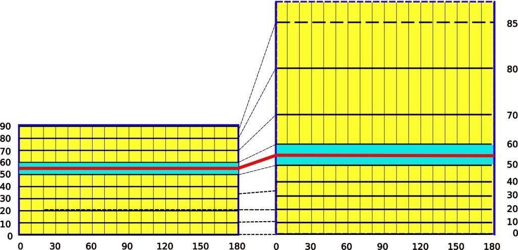 | Keywords: Mercator by Wright stretching.svg en Showing how Edward Wright calculated the Mercator parallels On an equirectangular projection calculate the parallel scale factor for one strip at mid height and use this value to widen the strip Wright actually used 540 strips 1599 and later 5400 strips 1610 to obtain highly accurate results own Peter Mercator 2010-08-06 cc-zero Mercator projections Edward Wright mathematician SVG diagrams Diagrams labelled with numbers only | ||||