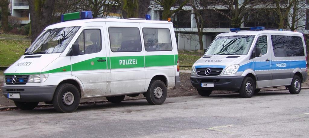 Keywords: Mercedes-Benz Sprinter Polizei Hamburg.jpg en Two Mercedes-Benz Sprinter police cars of the police of Hamburg To the left an older 312 in green to right a newer one in blue de Zwei Mercedes-Benz Sprinter Polizeiwagen der Hamburger Polizei Links ein älterer 312 D in alter grün-weißer Lackierung rechts ein neueres Modell in silber-blauer Lackierung own Garitzko 2009-03 Police automobiles in Germany Blue and silver police automobiles Mercedes-Benz Sprinter 1995 in police service Mercedes-Benz Sprinter 2006 in police service |