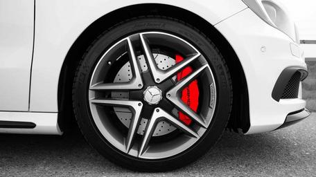 Keywords: mercedes wheel vehicle auto car transportation automobile mercedes-benz elegant luxury alloy tyre automotive design modern steering technology transport red brake caliper caliper brake