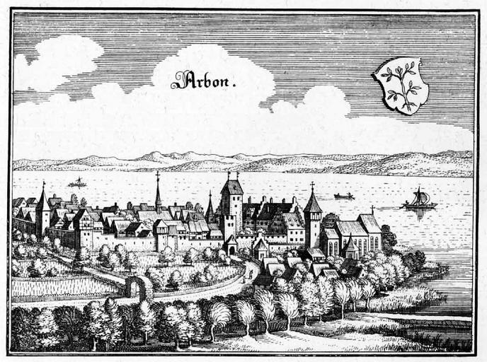 MAKE A MEME View Large Image Merian Arbon 1642.jpg en View of the town of Arbon Switzerland 1643 de Ansicht der Stadt Arbon Schweiz 1643 Topographia Sueviae Creator Matthäus Merian 1643 PD-old-100 Merian Sueviae picture Engravings by Matthäus Merian Arbon Lake ...