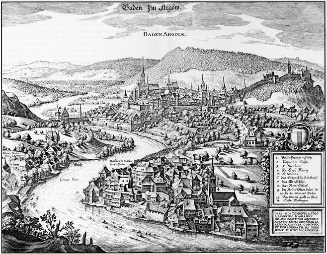 | Keywords: Merian Baden AG 1642.jpg Artwork Creator Matthäus Merian nach Creator Joseph Plepp 1635 Radierung accession number object history credit line Topographia Helvetiae Rhaetiae et Valesiae 1642 PD-old-100 Engravings by Matthäus Merian Merian Helvetiae Historical images of Baden Switzerland 1642 in Switzerland Engravings of cities in Switzerland Joseph Plepp |