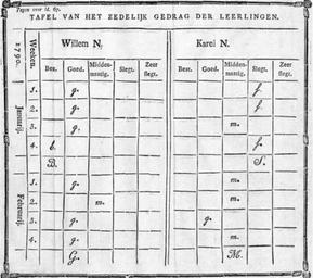 | Keywords: Merit Table from Maatschappij tot Nut van 't Algemeen 1798.png en Merit Table for school children 1798 cite book Baggerman Arianne Dekker Rudolf Michel Child of the Enlightenment Revolutionary Europe Reflected in a Boyhood Diary http //books google com/books id TyfVlEk06EgC pg PA71 2009-01-01 BRILL 90-04-17269-6 71 Maatschappij tot Nut van 't Algemeen other versions PD-old-70-1923 Uploaded with UploadWizard Maatschappij tot Nut van 't Algemeen | ||||