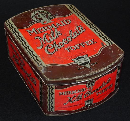 | Keywords: Mermaid Milk Chocolate toffee tin made by Horner, photo7.JPG Very old product that is not produced and not sold any more Note that some tins may look the same but when looked for carefully there are some slight differences Photographed at a collector of Droste memorabilia and old tin cans For more info see http //www tincollectors nl/ tincollectors nl or email info tincollectors nl own 2014-02-08 15 12 45 Alf van Beem CC-Zero Trademarked Toffee tins Chocolate tins | ||||