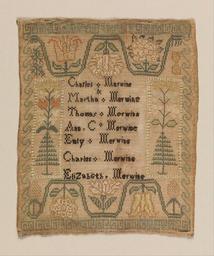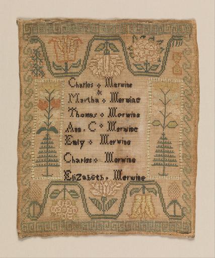 Keywords: Merwine Family - Sampler - Google Art Project.jpg ~ 1816 Merwine 6793920 Family /collection/cooper-hewitt-national-design-museum/artwork/sampler-merwine-family/6839757/ 146583 Merwine Family /artist/merwine-family/12696364/ 12696364 /collection/cooper-hewitt-national-design-museum/ Cooper-Hewitt National Design Museum 3644669 http //www cooperhewitt org/ /collection/cooper-hewitt-national-design-museum/artwork/sampler-merwine-family/6839757/ 1810 ca 1816 Medium silk embroidery on linen foundationTechnique embroidered on plain weave foundation By 1941 Mrs Henry E Coe Eva Johnston Coe 1941 - 1970 Emily Coe Stowell1970 Cooper-Hewitt Museum 6839757 False 1820 1970-28-22 http //collection cooperhewitt org/view/objects/asitem/id/146583 Bequest of Emily Coe Stowell from the Coe Collection Sampler 1810 1830 ca 1816 False 0 833984375 Object sampler-merwine-family Sampler s H x W 26 7 x 22 2 cm 10 1/2 x 8 3/4 in Charles MerwineMartha MerwineThomas MerwineAnn C MerwineEmily MerwineCharles MerwineElizabeth Merwine Medium silk embroidery on linen foundationTechnique embroidered on plain weave foundation By 1941 Mrs Henry E Coe Eva Johnston Coe 1941 - 1970 Emily Coe Stowell1970 Cooper-Hewitt Museum special url_id kwEah5fBMauTFg PD-old-100-1923 Google Art Project works by Merwine Family Textiles in the Cooper “Hewitt Smithsonian Design Museum 1810s samplers Google Art Project works in Cooper-Hewitt Smithsonian Design Museum 1816 works |
