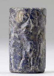 Keywords: Mesopotamian - Cylinder Seal with Figures in Combat with Horned Animals - Walters 42628 - Side A.jpg Combat scenes between humans and other creatures became very popular in the later Early Dynastic period The intricate pairing of interlocking figures creates an elaborate decorative pattern The star between the heads of the bull and goat may represent the sign for deity between 2600 2350 BC Early Dynastic II-Early Dynastic III lapis lazuli cm 2 1 1 accession number 42 628 7665 Mrs Henry Walters New York Sale Joseph Brummer New York 1941 Walters Art Museum 1941 by purchase Museum purchase 1941 place of origin Mesopotamia Walters Art Museum license Cylinder seals in the Walters Art Museum Art of Mesopotamia in the Walters Art Museum Media contributed by the Walters Art Museum needs category review |