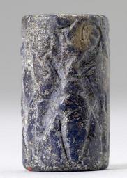 Keywords: Mesopotamian - Cylinder Seal with Figures in Combat with Horned Animals - Walters 42628 - Side B.jpg Combat scenes between humans and other creatures became very popular in the later Early Dynastic period The intricate pairing of interlocking figures creates an elaborate decorative pattern The star between the heads of the bull and goat may represent the sign for deity between 2600 2350 BC Early Dynastic II-Early Dynastic III lapis lazuli cm 2 1 1 accession number 42 628 7665 Mrs Henry Walters New York Sale Joseph Brummer New York 1941 Walters Art Museum 1941 by purchase Museum purchase 1941 place of origin Mesopotamia Walters Art Museum license Cylinder seals in the Walters Art Museum Art of Mesopotamia in the Walters Art Museum Media contributed by the Walters Art Museum needs category review |