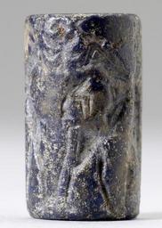 Keywords: Mesopotamian - Cylinder Seal with Figures in Combat with Horned Animals - Walters 42628 - Side F.jpg Combat scenes between humans and other creatures became very popular in the later Early Dynastic period The intricate pairing of interlocking figures creates an elaborate decorative pattern The star between the heads of the bull and goat may represent the sign for deity between 2600 2350 BC Early Dynastic II-Early Dynastic III lapis lazuli cm 2 1 1 accession number 42 628 7665 Mrs Henry Walters New York Sale Joseph Brummer New York 1941 Walters Art Museum 1941 by purchase Museum purchase 1941 place of origin Mesopotamia Walters Art Museum license Cylinder seals in the Walters Art Museum Art of Mesopotamia in the Walters Art Museum Media contributed by the Walters Art Museum needs category review |