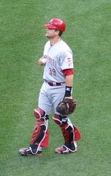 Keywords: MesoracoReds2016.jpg Devin Mesoraco with the Cincinnati Reds during pre-game warmups April 25 2016 2016-04-25 own Editosaurus other versions 40 756944 -73 845833 cc-zero Devin Mesoraco 2016 Cincinnati Reds season