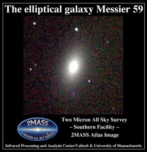 | Keywords: Messier 059 2MASS.jpg The elliptical galaxy Messier 59 http //www ipac caltech edu/2mass/gallery/messiercat html 2MASS Atlas Image Gallery The Messier Catalog Two Micron All Sky Survey 2MASS a joint project of the University of Massachusetts and the Infrared Processing and Analysis Center/California Institute of Technology funded by the National Aeronautics and Space Administration and the National Science Foundation 2MASS Atlas image Messier 59 2MASS Atlas Image Gallery The Messier Catalog BIG SIZE |