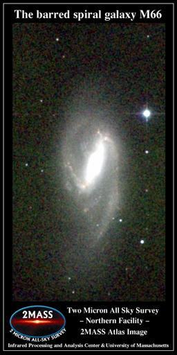 | Keywords: Messier 066 2MASS.jpg The barred spiral galaxy Messier 66 http //www ipac caltech edu/2mass/gallery/messiercat html 2MASS Atlas Image Gallery The Messier Catalog Two Micron All Sky Survey 2MASS a joint project of the University of Massachusetts and the Infrared Processing and Analysis Center/California Institute of Technology funded by the National Aeronautics and Space Administration and the National Science Foundation 2MASS Atlas image Messier 66 2MASS Atlas Image Gallery The Messier Catalog BIG SIZE |