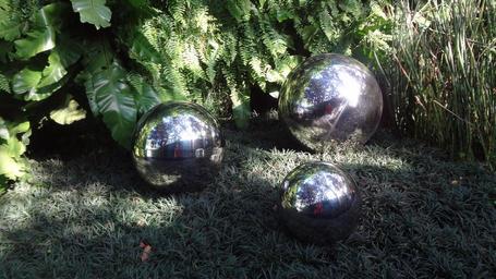 Keywords: metal spheres garden decoration garden gardening landscaping reflection meditation