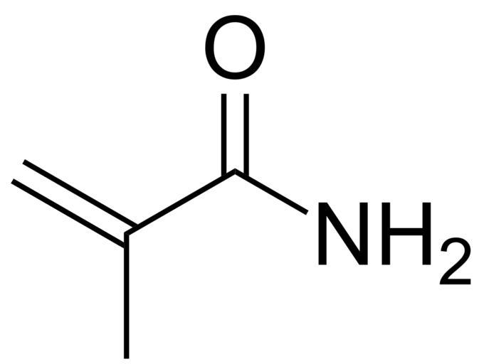Keywords: Methacrylamide skeletal.svg Chemical structure of methacrylamide 2-Methyl-2-propenamide; 2-Methylpropenamide; α-Methyl acrylic amide; Methacrylic acid amide; Methacrylic amide; Methylacrylamide Own 18 58 12 June 2012 UTC Ed Edgar181 200px Unsubstituted primary amides Monomers |