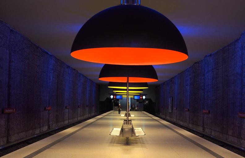 Keywords: metro railway station train subway stop passengers traffic rail traffic lamp munich passenger transport platform