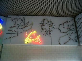 Keywords: MetroCarnide3.JPG en Metro Station Carnide in Lisbon Metro uk станція «Ка ніде» у Лісабонському мет ополітені деко ація стін Own Koshelyev 8-11-2008 Metro station Carnide Lisboa Neon signs Art in Lisbon Metro
