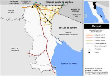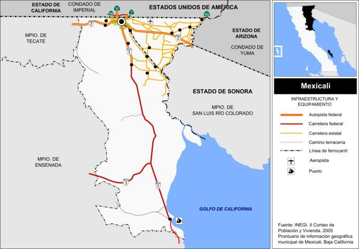 Keywords: Mexicali comunicaciones.svg Mapa de comunicaciones e infraestructura del municipio de Mexicali Baja California México own Inkscape 2010-04-09 Battroid Maps of Baja California Mexicali Municipality