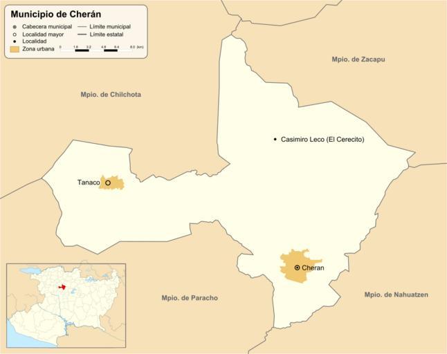 Keywords: Mexico Michoacan Cheran comunities map.svg Mapa de las principales localidades del municipio de Cherán en el estado de Michoacán México own Inkscape 2011-12-31 Battroid Locator maps of cities in Michoacán Cheran SVG maps of Michoacán x