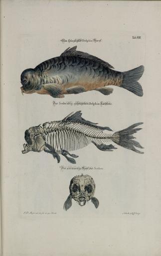 Keywords: Meyer Zeit-Vertreib 1 Tafel 008.jpg Mops-Karpfen Mopskarpfen Delphinkarpfen carpe mopse carpe à tête de dauphin Angenehmer und nützlicher Zeit-Vertreib mit Betrachtung curioser Vorstellungen allerhand kriechender fliegender und schwimmender auf dem Land und im Wasser sich befindender und nährender Thiere sowohl nach ihrer Gestalt und äusserlichen Beschaffenheit als auch nach der accuratest davon verfertigten Structur ihrer Scelete oder Bein-Cörper nebst einer deutlichen so physicalisch und anatomisch besonders aber osteologisch und mechanischen Beschreibung derselben / nach der Natur gezeichnet gemahlet in Kupfer gestochen und verlegt von Johann Daniel Meyer Miniatur-Mahler in Nürnberg; Band 1; Nürnberg 1748<br /> Tafel 8 Delphinkarpfen http //resolver sub uni-goettingen de/purl PPN624674746 1748 Creator Johann Daniel Meyer PD-old-100 Angenehmer und nützlicher Zeit-Vertreib 1 Meyer Carps in art Diseases and disorders of fish |