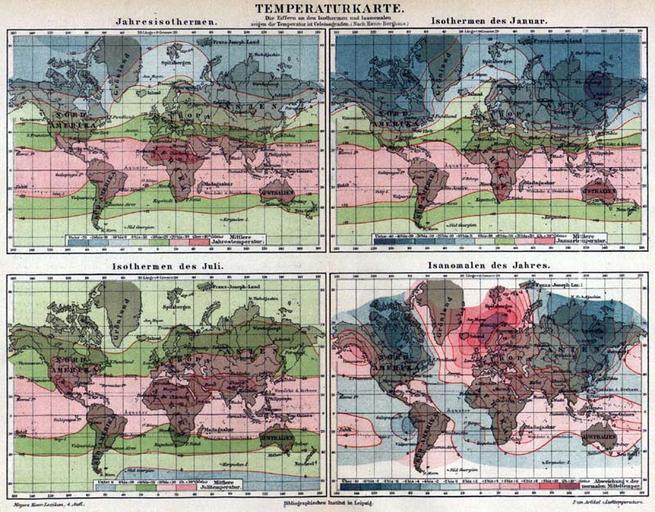 | Keywords: Meyers b10 s0991a.jpg map of the temperature Temperaturkarte Die Ziffern an den Isothermen und Isanomalen zeigen die Temperatur in Celsiusgraden Nach Hann-Berghaus Jahresisothermen Isothermen des Januar Isothermen des Juli Isanomalen des Jahres Meyers Konversationslexikon 1885-90 Bibliographisches Institut 10 PD-old-70-1923 Maps from Meyers Konversationslexikon 4th edition Global meteorological maps | ||||