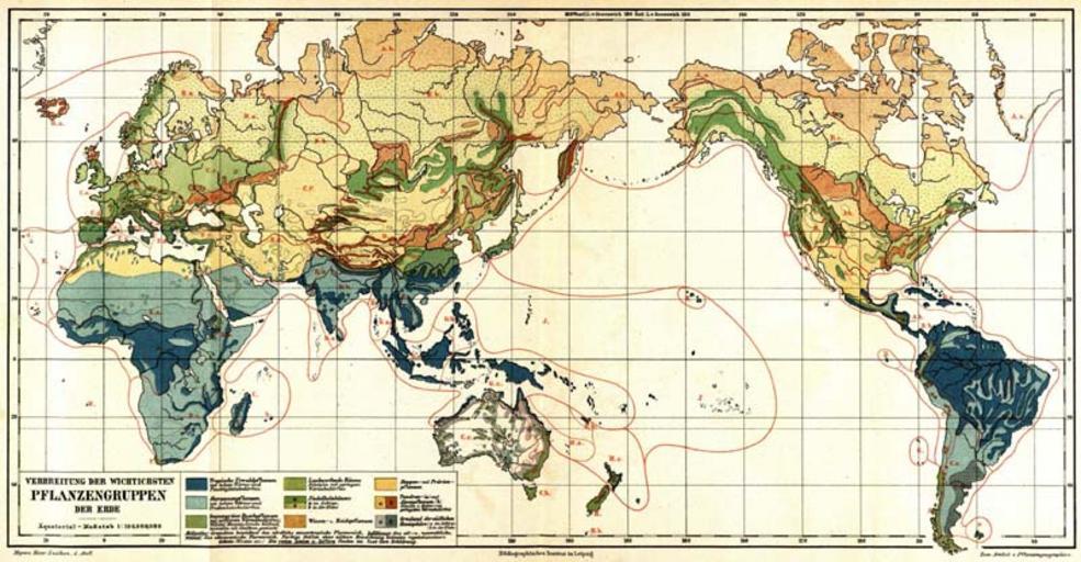 | Keywords: Meyers b12 s0960a.jpg Old map of the world in mid-1888 showing the important plant groups of the Earth but too small to read Alte Karte von der Welt in Mitte 1888 Verbreitung der wichtigsten Pflanzengruppen der Erde Jedoch die Karte ist zu kleine zu lesen 12 0960 0961 1885-1890 Carl Joseph Meyer 1796-1856 see en Joseph Meyer or de Joseph Meyer PD-old Maps from Meyers Konversationslexikon 4th edition Pflanzengruppen Verbreitung der wichtigsten Pflanzengruppen der Erde 1880s maps of the world 1888 1888 maps Biogeographical maps of the world |