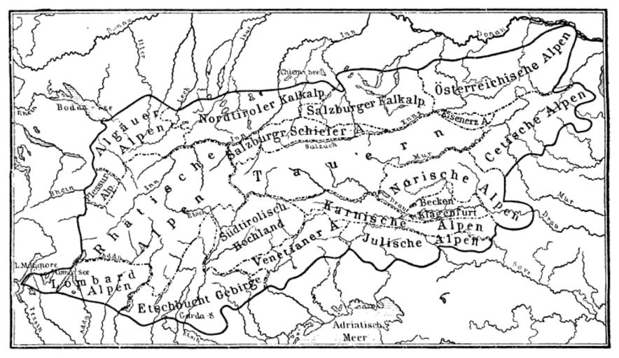 Keywords: Meyers b19 s0030 b1.png de Einteilung der Ostalpen nach A Böhm Meyers b19 s0030 jpg ca 1885 author PD-Meyers Images from Meyers Konversationslexikon 4th edition - text figures Old maps of the Alps