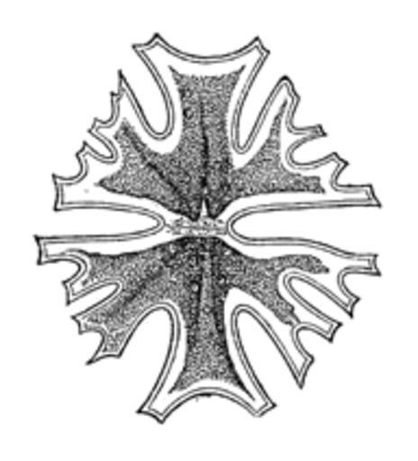 Keywords: Meyers b1 s0343 b1.png de Euastrum crux melitensis eine aus zwei symmetrischen Hälften bestehende einfache Zelle darstellend Meyers b1 s0343 jpg ca 1885 author PD-Meyers Euastrum Images from Meyers Konversationslexikon 4th edition - text figures |