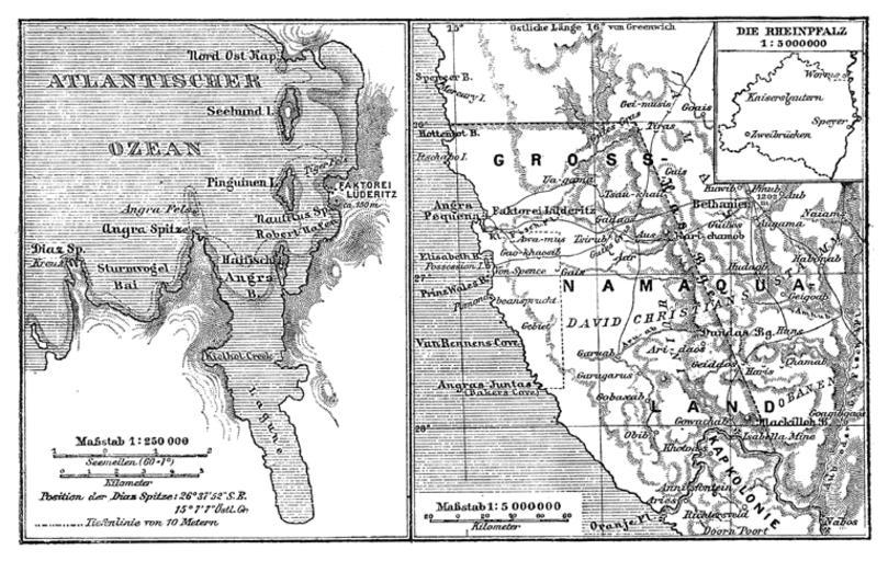 | Keywords: Meyers b1 s0581 b1.png de links Angra Pequena-Bai 1 250 000 rechts Lüderitzland 1 5 000 000 als Größenvergleich die Rheinpfalz Meyers b1 s0581 jpg ca 1885 author PD-Meyers Lüderitz Maps from Meyers Konversationslexikon 4th edition Images from Meyers Konversationslexikon 4th edition - text figures |