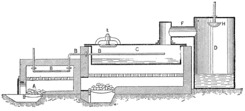 | Keywords: Meyers b1 s0627 b1.png de Apparat zur Darstellung von Anthracen A Herd B Rohr für Zuleiten von Wasserdampf C Pfanne zum Schmelzen D Kammer zur Aufnahme von Anthracen E Öffnung für Befüllen von C F Rohr zum Ableiten von gasförmigem Anthracen H Brause Meyers b1 s0627 jpg ca 1885 author PD-Meyers Anthracene Images from Meyers Konversationslexikon 4th edition - text figures |