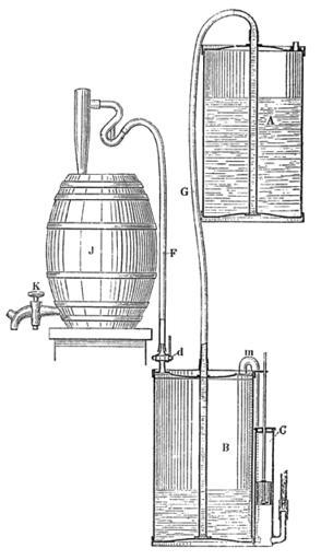 Keywords: Meyers b2 s0922 b1.png de Bierdruckapparat von Mahr u Eisele A “ Wasserbehälter B “ Luftreservoir C “ Pumpe F G m “ Rohre J “ BierfaĂź K d “ Hähne Meyers b2 s0922 jpg ca 1885 author PD-Meyers Beer barrels Images from Meyers Konversationslexikon 4th edition - text figures |