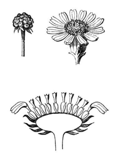 | Keywords: Meyers b3 s0080 b3.png de oben links Köpfchen rechts Blütenkörbchen unten schematischer Durchschnitt des Blütenkörbchens Meyers b3 s0080 jpg ca 1885 author PD-Meyers 19th-century flower diagrams Images from Meyers Konversationslexikon 4th edition - text figures |