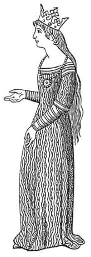 Keywords: Meyers b4 s0309 b1.png de Frau in Cotte hardie nach Viollet le Duc Meyers b4 s0309 jpg ca 1885 author PD-Meyers Images from Meyers Konversationslexikon 4th edition - text figures Medieval dress