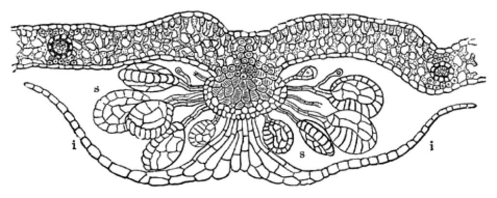 Keywords: Meyers b6 s0052 b1.png de Durchschnitt eines Fruchthäufchens von Aspidium Filix mas s Sporangien i Schleier Meyers b6 s0052 jpg ca 1885 author PD-Meyers Images from Meyers Konversationslexikon 4th edition - text figures Aspidium